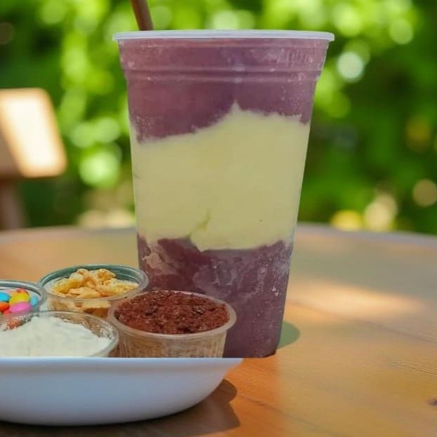 Copo de Açaí 700 ml (Copo Grande) Açaí cremoso. Monte do seu jeito e escolha até 4 complementos grátis, cada complemento em uma camada. Ideal para quem ama açaí e quer aproveitar cada colherada! 🍓🥥🍌