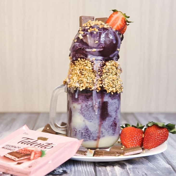Chocolate talento, leite condensado, amendoim, Nutella e morango