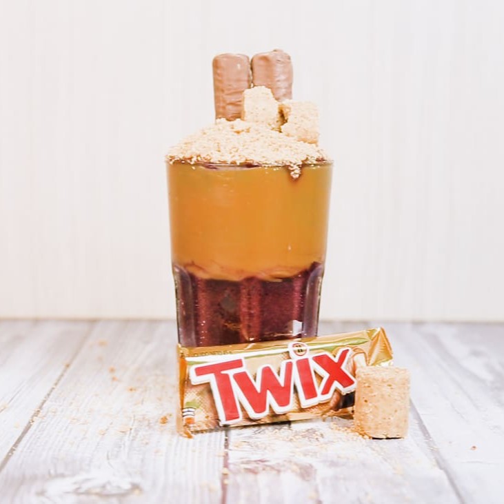 Chocolate twix, doce de leite e paçoca.
