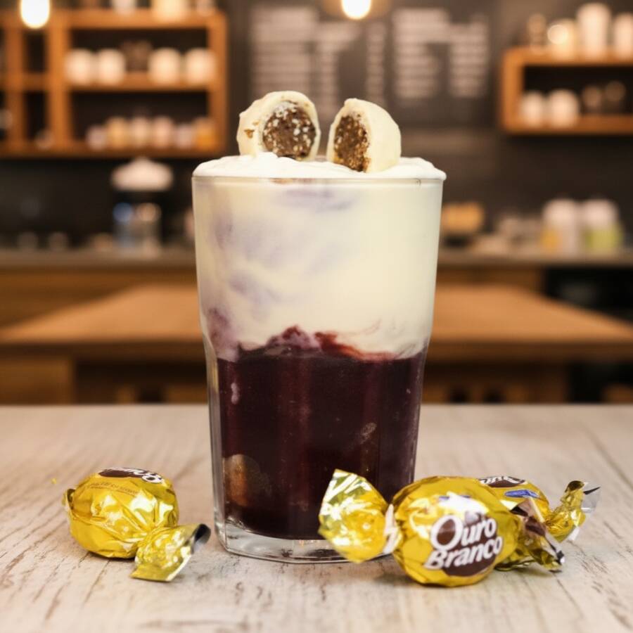 Nosso açaí cremoso batido com leite, na consistência de milk-shake e recheio de sua preferência.
