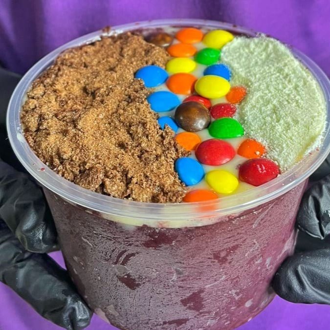 A mistura perfeita tá na área: açaí + cupuaçu, cremosinhos, gelados e prontos pra te conquistar! Monte o seu na medida certa: 300ml, 500ml ou 1l. Escolha até 4 complementos do seu jeito e se joga nessa explosão de sabor!