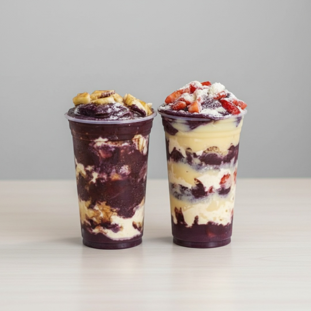 Açaí artesanal de verdade livre de químico e conservantes. Super cremoso com sabor único, montado com os melhores ingredientes do mercado.
