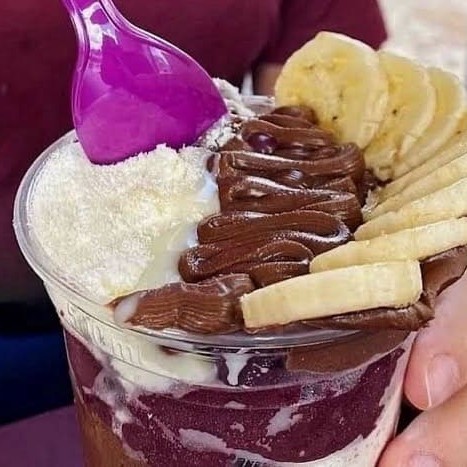 Açaí com creme de avelã 500ml escolha até 4 tipos de acompanhamentos grátis.