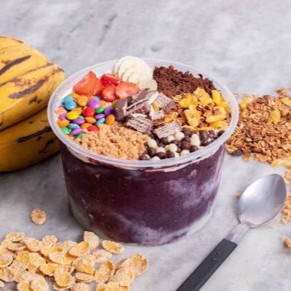 Açaí tradicional de 770ml escolha até 4 tipos de acompanhamentos grátis.