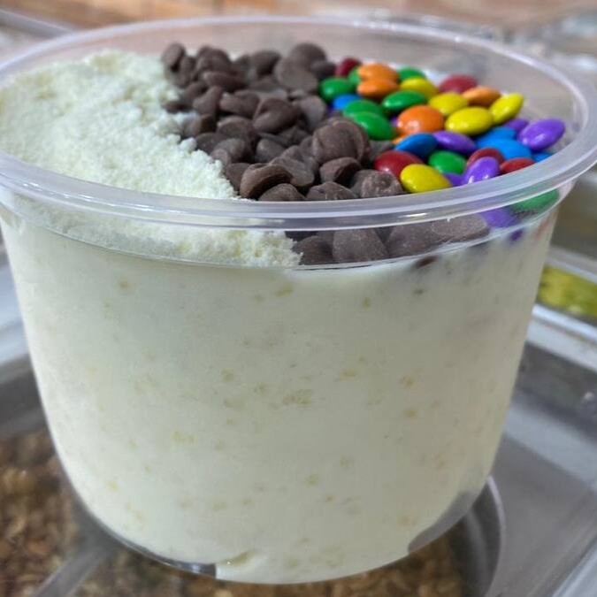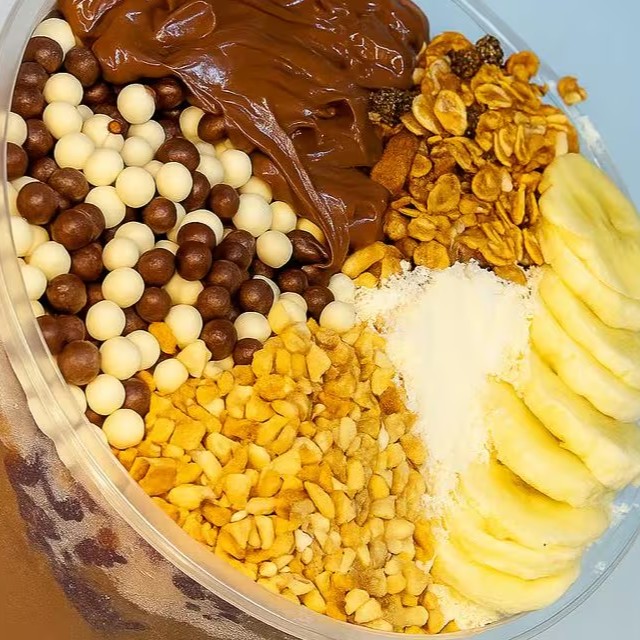 Açaí com creme de leite Ninho e 5 acompanhamentos a sua escolha.