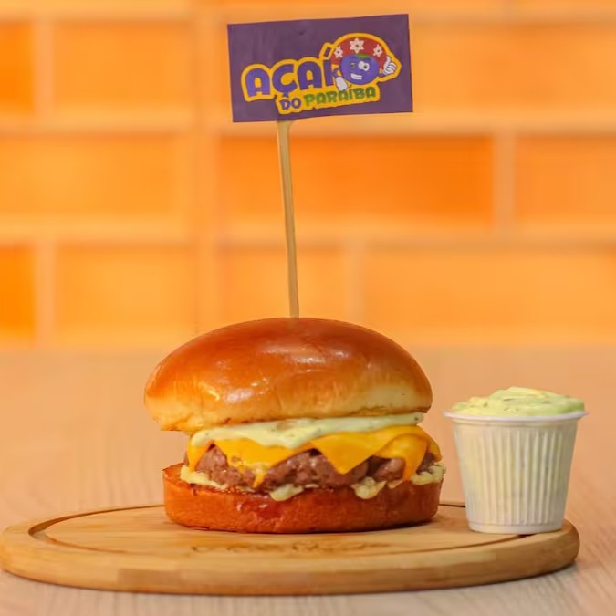 Hambúrguer artesanal (150g), queijo cheddar, maionese temperada, pão de brioche selado na manteiga.