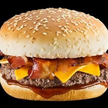 Pão, 2 hambúrguer de carne, queijo, cheddar, bacon e maionese.