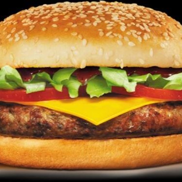 Pão, hambúrguer de 90g, queijo, alface, tomate, milho e batata palha.
