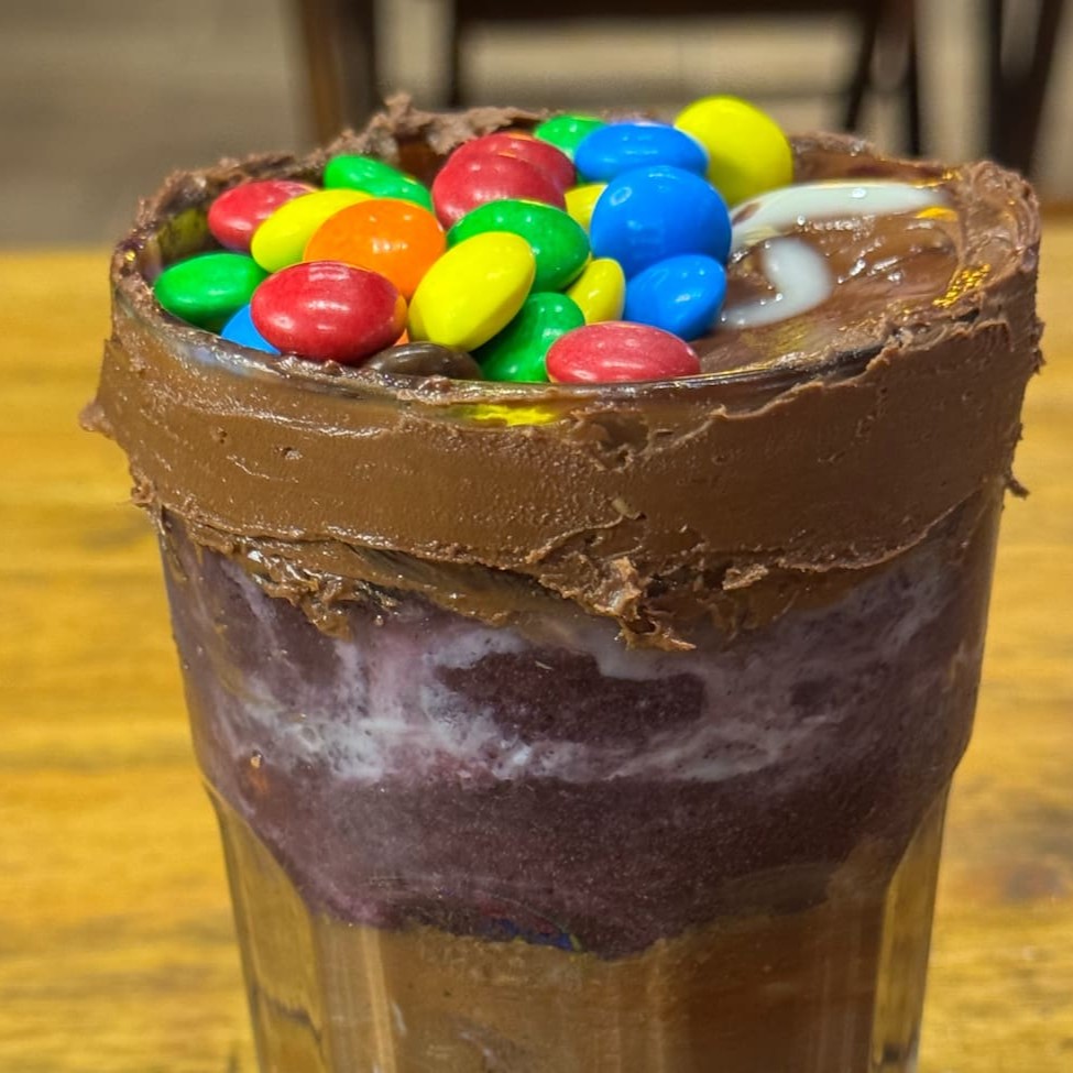 Este deleite é uma combinação exuberante de açaí rico e cremoso, suavemente misturado com o doce leite condensado. Uma borda interna generosamente revestida de Nutella adiciona uma dimensão indulgente a cada colherada. Para um toque final, uma cobertura luxuosa de Nutella e M&M's coloridos é espalhada por cima, criando uma mistura de cores e sabores inesquecíveis. Um prato verdadeiramente celestial. Acai Açaí Açaís