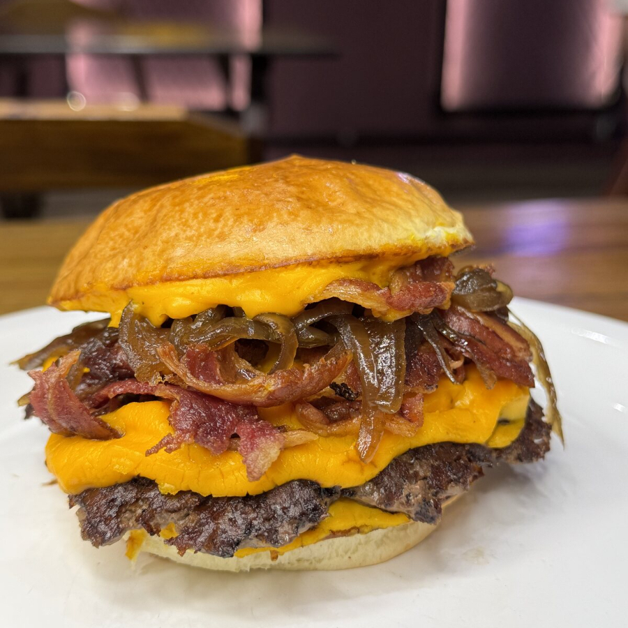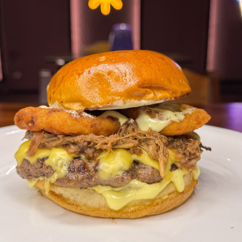 Pão brioche, hamburguer 145g, requeijão cremoso, maionese da casa, cebola crispy e farofa de bacon.