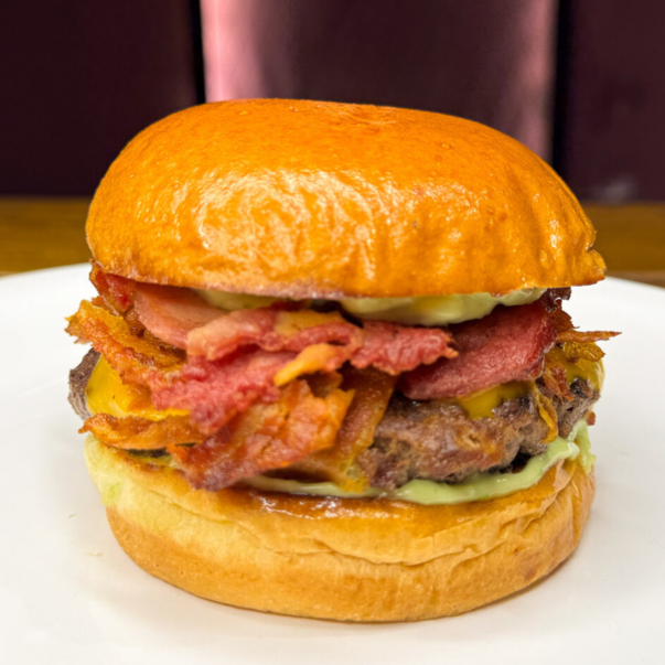 Pão brioche fofinho, hambuguer artesanal de 145g feito com carnes nobres, tiras de bacon suculentas, duas laminas de queijo cheddar e nossa maravilhosa maionese verde.