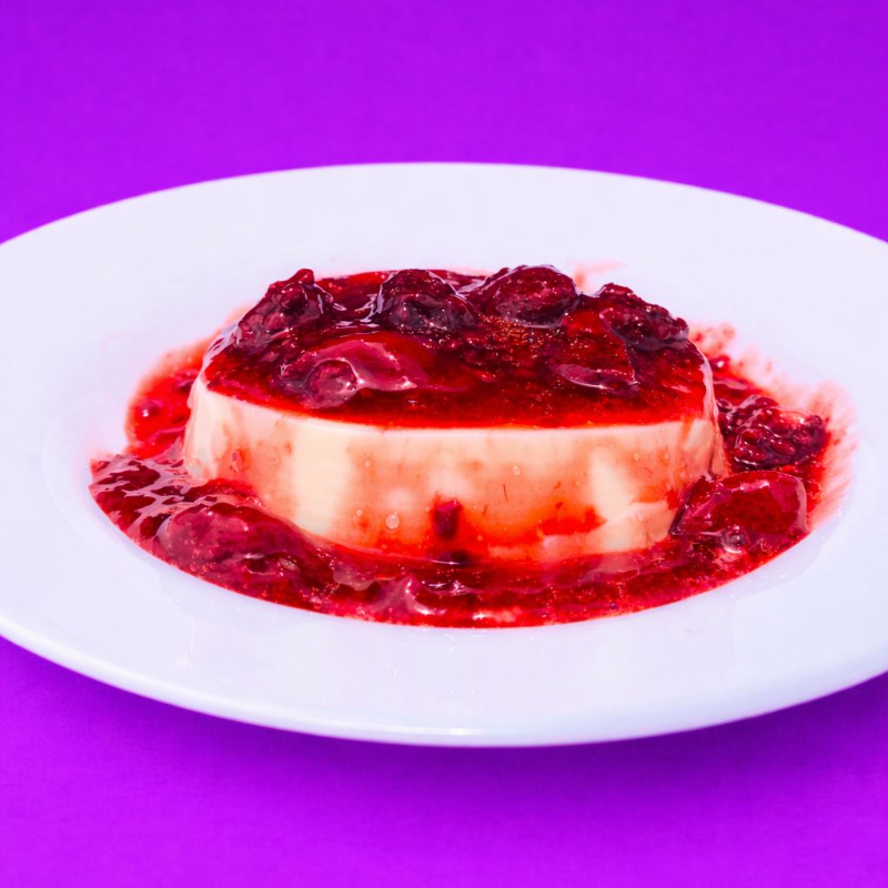 Um delicioso creme de ninho, com uma calda artesanal de frutas vermelhas que da um toque especial na sobremesa. E para os apaixonados em sobremesa de ninho essa é sem duvidas a melhor escolha!
