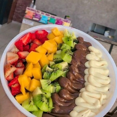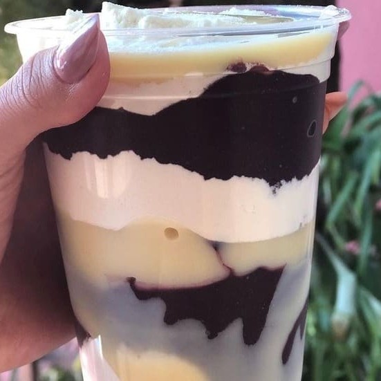 Os itens selecionados vão dentro do copo em camadas! Temos diversas frutas e acompanhamentos, personalize seu pedido como desejar! Foto real do nosso produto !