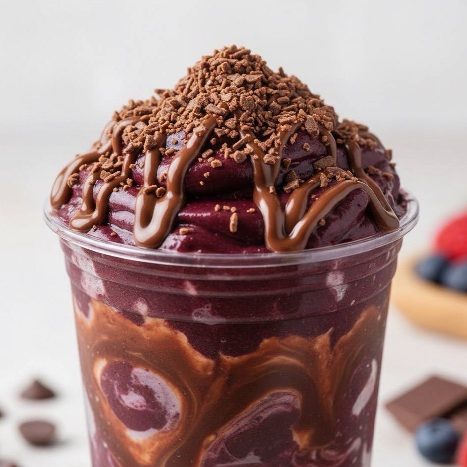 O açaí de 300 ml vem trufado com Nutella, garantindo uma textura irresistível e um toque extra de chocolate