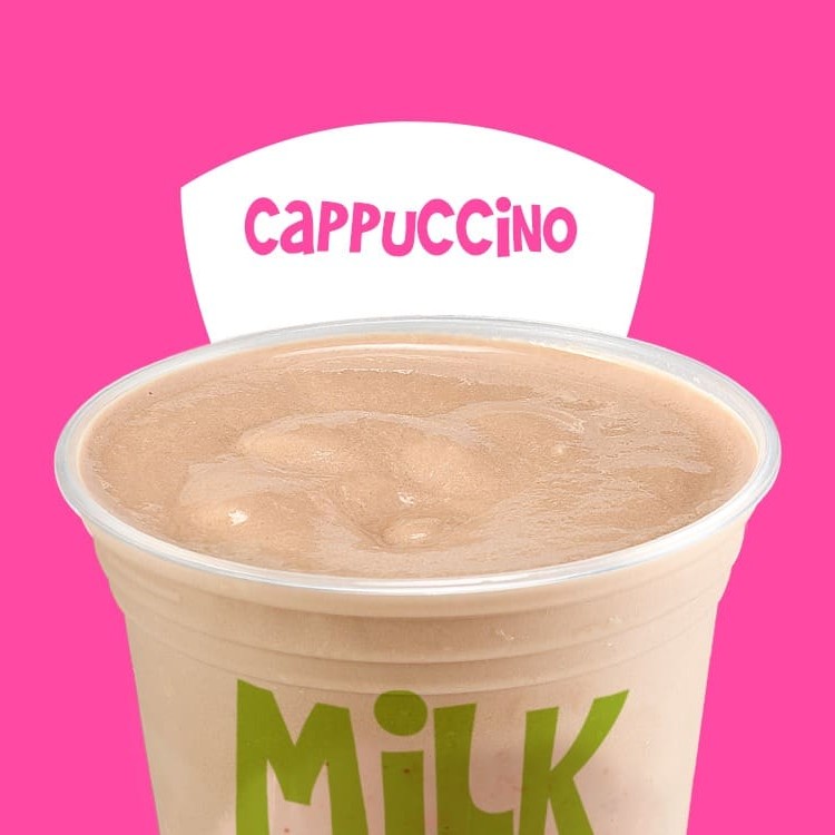 Esta bebida cremosa e refrescante é preparada com uma massa saborosa, batida com leite. O sabor inconfundível e adorado do cappuccino é o protagonista, transformando cada gole numa experiência saborosa e inesquecível. É a combinação perfeita de prazer e frescor em cada copo!