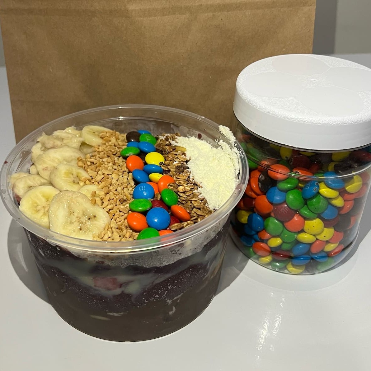 Explosões de Sabores do puro açaí cremoso + 5 opções de acompanhamentos de extrema qualidade a sua escolha. ( Copos iram montados com os acompanhamentos)