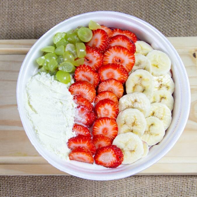 podendo ser, manga, banana, morango, uva e abacaxi.