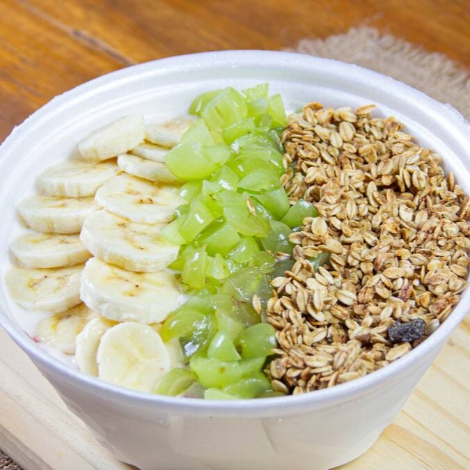 Leite condensado e granola, precisa ser selecionado na parte dos complementos para acompanhar o copo. Serão acrescentado junto ao copo.