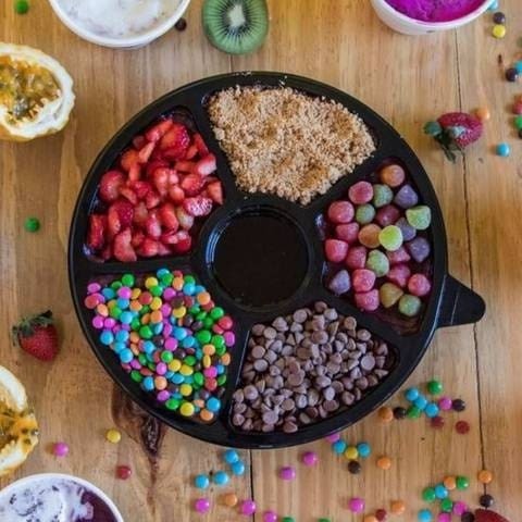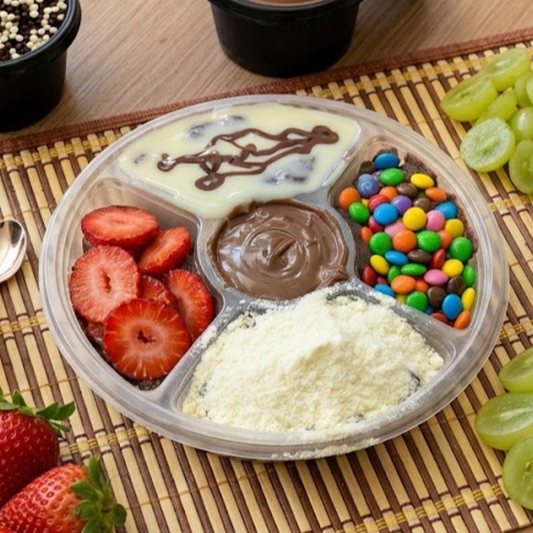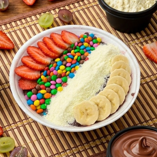 Delicie-se com a nossa 'Roleta de Açaí Grande'. Este prato é uma verdadeira explosão de sabores tropicais, oferecendo a você a liberdade de personalização com seis complementos à sua escolha. Quer juntar tudo com o açaí ou prefere separar? Temos ambas as opções! Cada mordida é uma surpresa, com os toppings proporcionando uma variedade incrível de texturas e sabores. Experimente a riqueza e a diversidade do nosso cardápio, tudo em um único prato. Dê uma volta na nossa roleta e descubra o seu mix favorito!