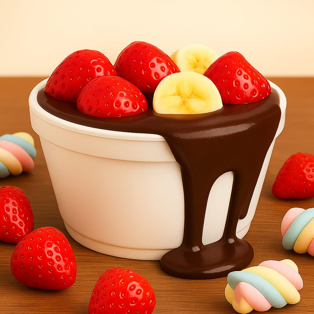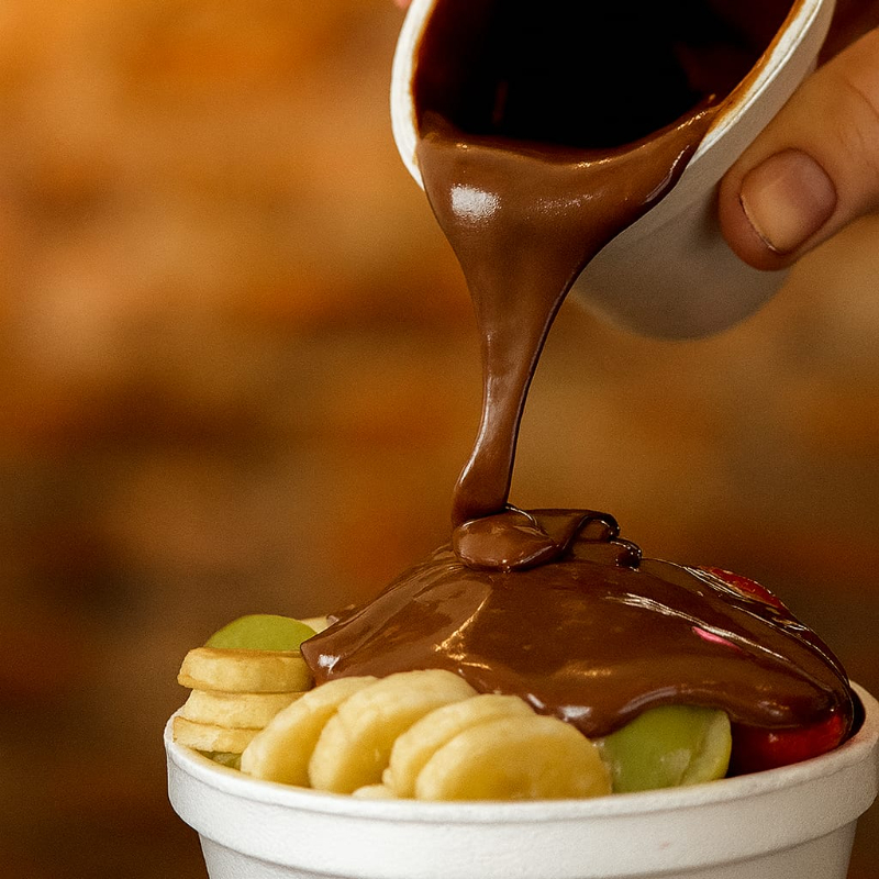 Delicioso Fondue com Ganache feite com blend de chocolate ao leite e meio amargo, você pode escolher seus acompanhamento e montar do seu jeito! Iremos enviar dois potes, um com as frutas e outro contendo o chocolate.