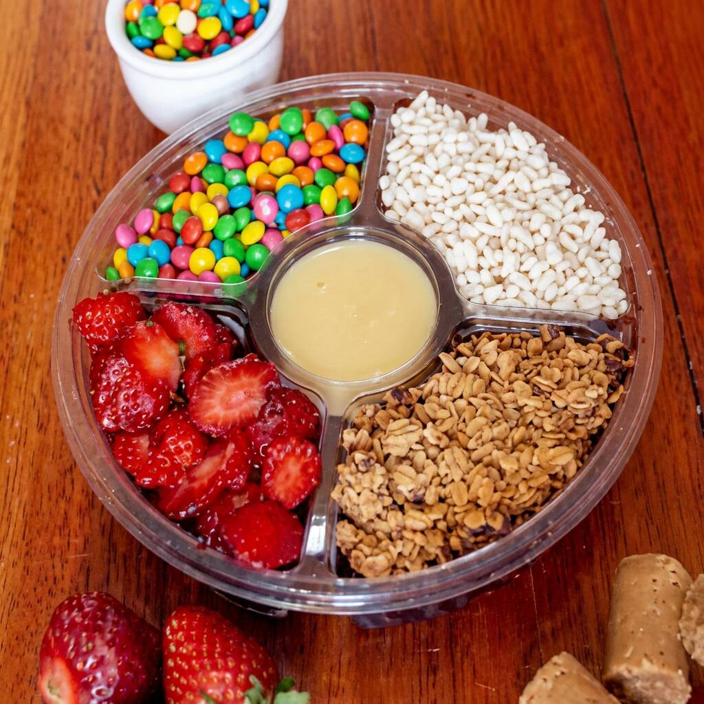 Escolha suas frutas, caldas e acompanhamentos, vários grátis!