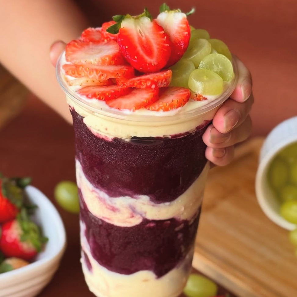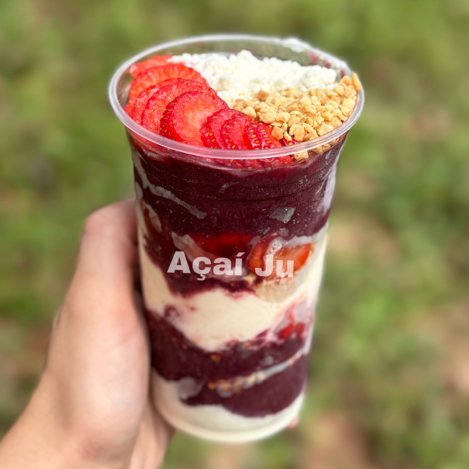 Um copo gigante para compartilhar (ou se deliciar sozinho ). 700ml de açaí cremoso com frutas frescas e muito sabor em cada colherada!