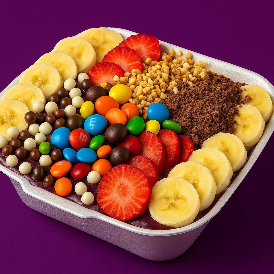 700ml Uma tigela gigante para compartilhar (ou se deliciar sozinho ). 700ml de açaí cremoso com frutas frescas e muito sabor em cada colherada!