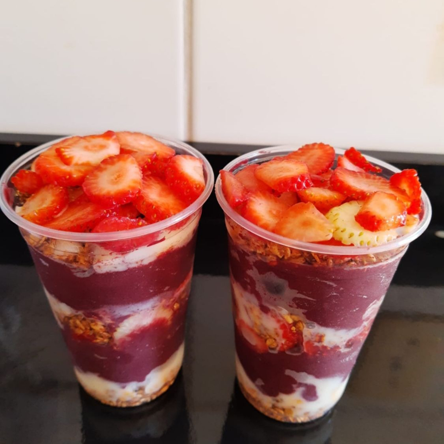 2 copos de 300ML . Açaí, Nutella, Leite Condensado e Morango.
