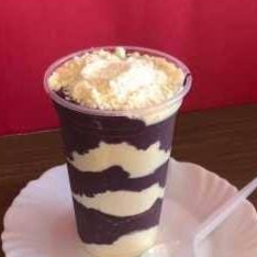 AÇAI 400ML UMA COMBINAÇAO PERFEITA ENTRE O SABOR DO AÇAI GELADO E CREMOSO , COM PEDAÇOS GENEROSOS DE CHOCOLATE BRANCO QUE DERRTEM NA BOCA E UMA CAMADA MACIA DE LEITE EM PÓ QUE ADICIONA UM TOQUE ESPECIAL NO SEU COPO .