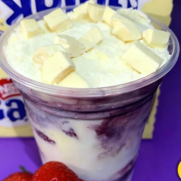 Açai 300ml + Creme De Leitinho + Morango + Leite Em Pó + Pedaços De Chocolate Branco