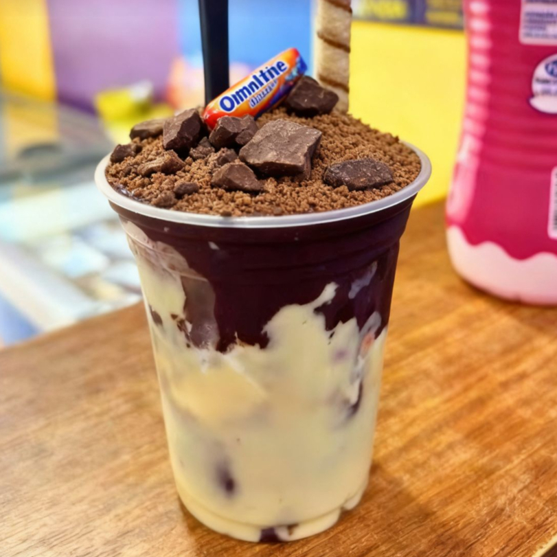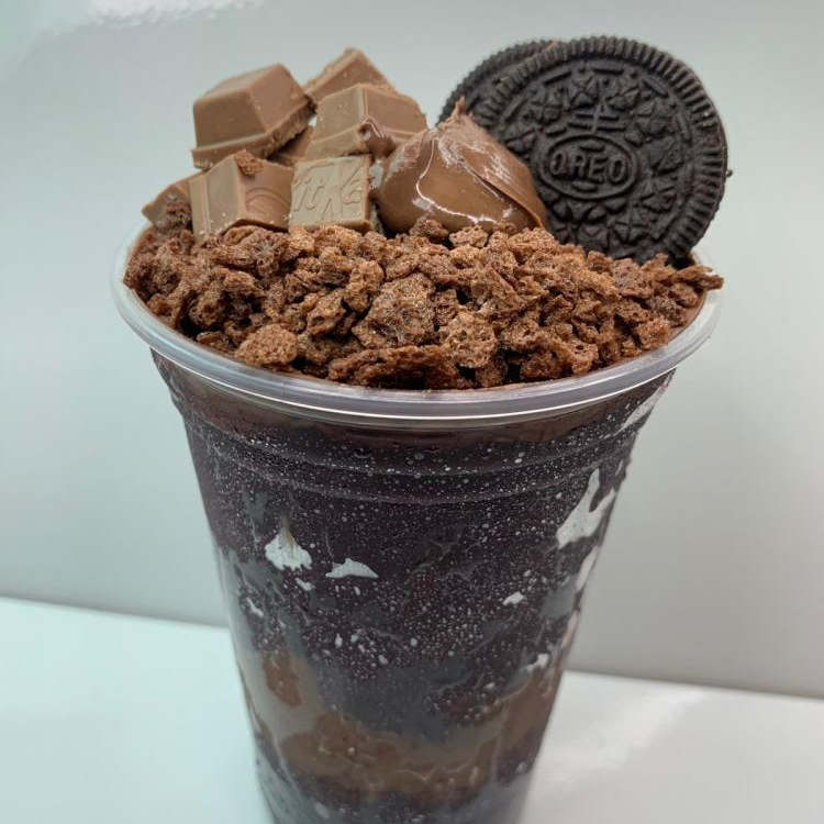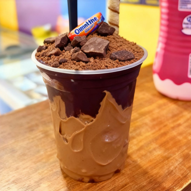 AÇAI 500ML C/CREME DE AVELÃ , OVOMALTINE EM PÓ , E PEDAÇOS DE CHOCOLATE ROCK OVOMALTINE