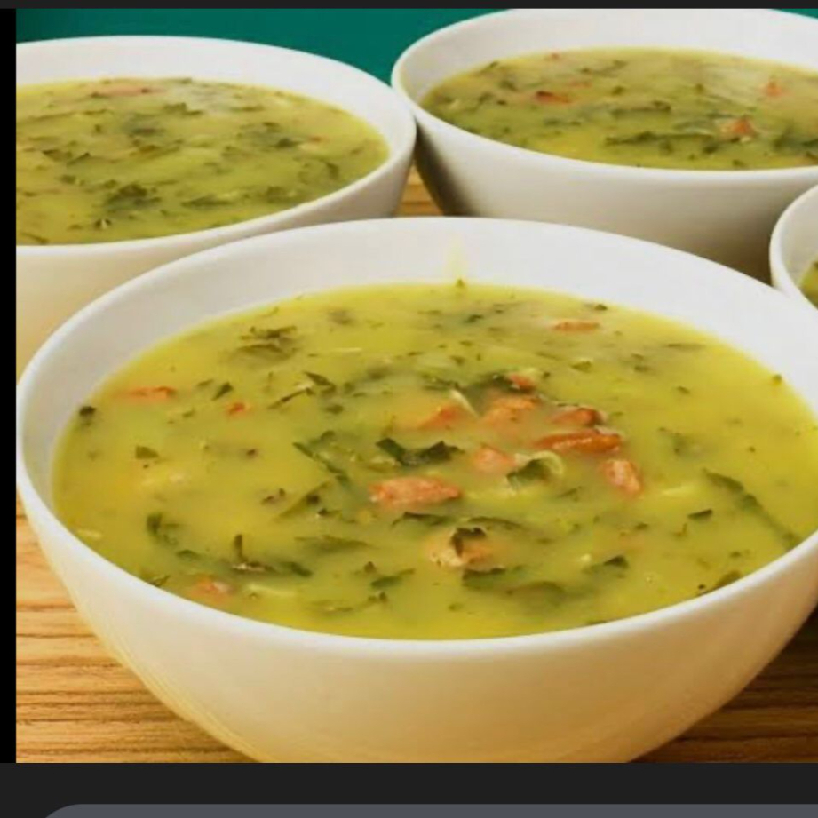 O QUERIDINHO CALDO VERDE PORTUGUÊS QUE CONQUISTA CORAÇÕES NO BRASIL ! NOSSO CALDO VERDE É PREPARADO COM AMOR : FOLHAS FRSCAS DE COUVE MANTEIGA , PURÊ de batata cremoso e pedacinhos de linguiça defumada que deixam tudo mais saboroso ainda com um toque de pedaços de bacon e torradinhas douradas e crocantes , perfeitas para mergulhar nesse abraço quente de sabor !