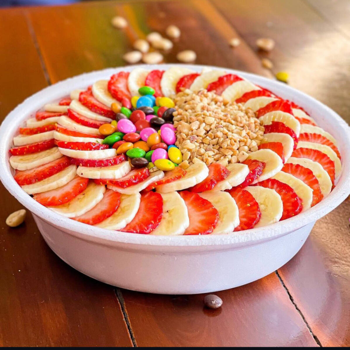 Delicie-se com nosso autêntico açaí natural , Este copo é a combinação perfeita de sabor e saúde, com frutas frescas e complementos de sua escolha. Você tem a liberdade de escolher seu açai mais tradicional ou gourmetizado com até quatro adicionais gratuitos e mais 20 opções extra. Nossos copos são armazenado a -26c em copos de isopor projetados para preservar a qualidade e a temperatura ideal do