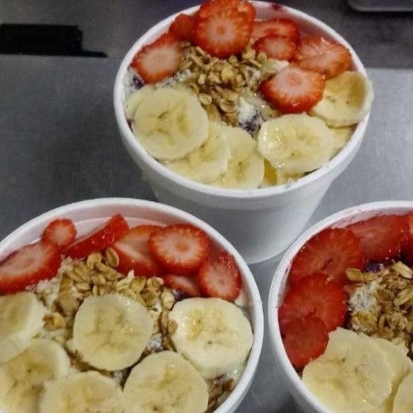 Delicie-se com nosso autêntico açaí natural , Este copo é a combinação perfeita de sabor e saúde, com frutas frescas e complementos de sua escolha. Você tem a liberdade de escolher seu açai mais tradicional ou gourmetizado com até quatro adicionais gratuitos e mais 20 opções extra. Nossos copos são armazenado a -26c em copos de isopor projetados para preservar a qualidade e a temperatura ideal do