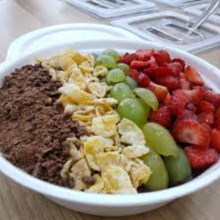 Servimos um delicioso mix de açaí na marmita mais 4 complementos grátis a sua escolha. Ideal para lanche ou sobremesa. Marmita de 500ml. Serve bem 1 pessoa.