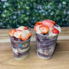 Servimos um delicioso mix de açaí na marmita mais 4 complementos grátis a sua escolha para cada marmita. 2 Marmitas de 500ml. Serve bem 2 pessoas
