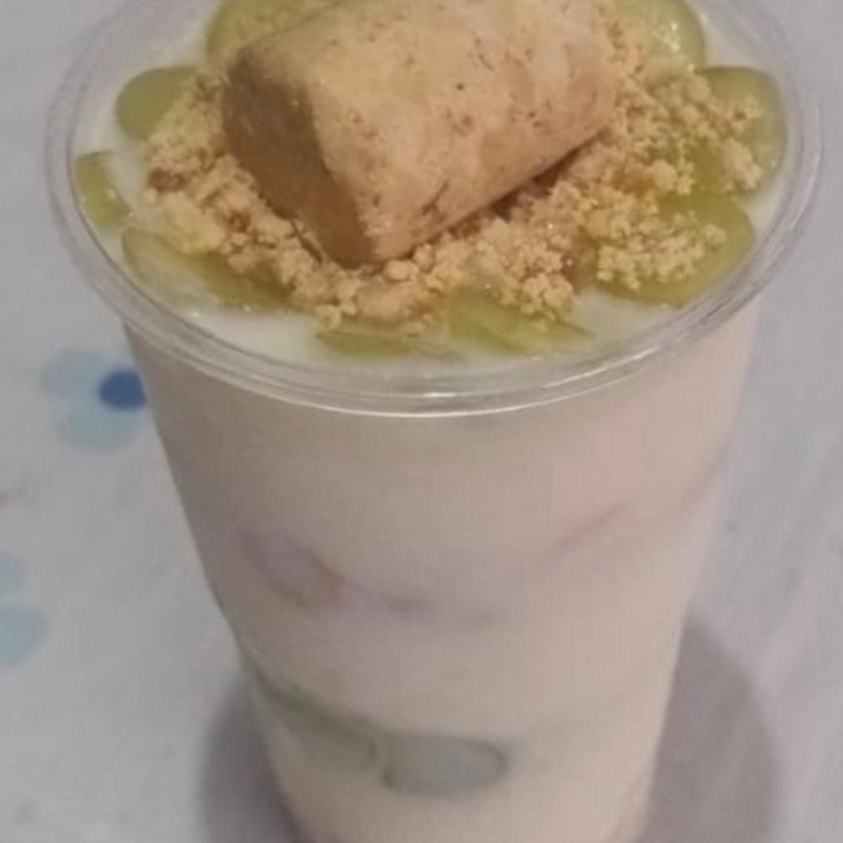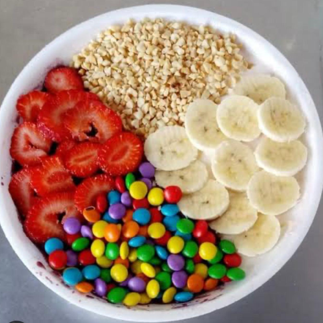 ingredintes fixos sem alteraçoes ( banana,granola,leite em po,leite condesado e finaliza com farofa de paçoca)