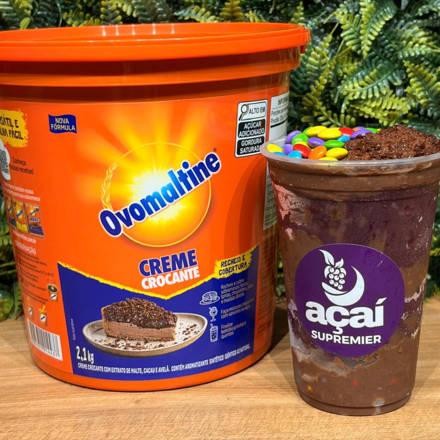 Açai cremoso com 3 camadas de creme de Ovomaltine + 3 acompanhamentos de sua preferência.