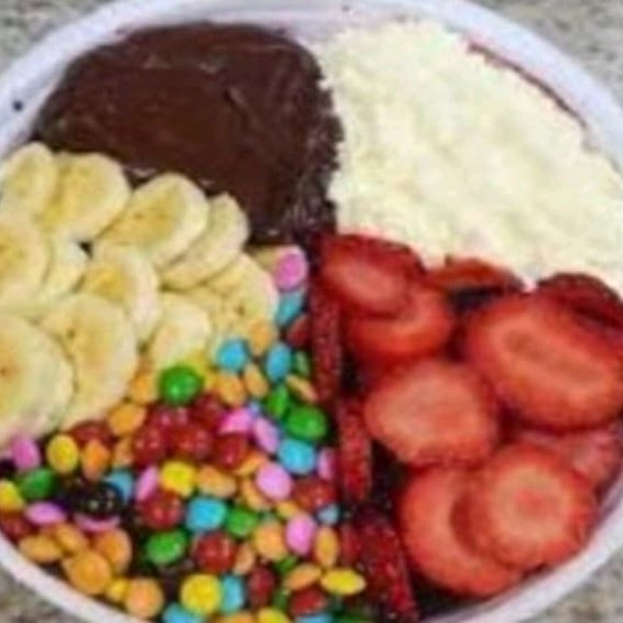 Açaí com 3 acompanhamentos grátis á sua escolha.