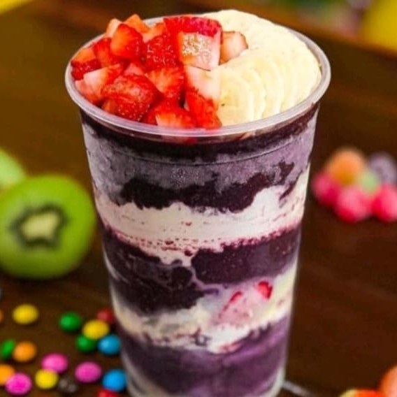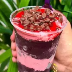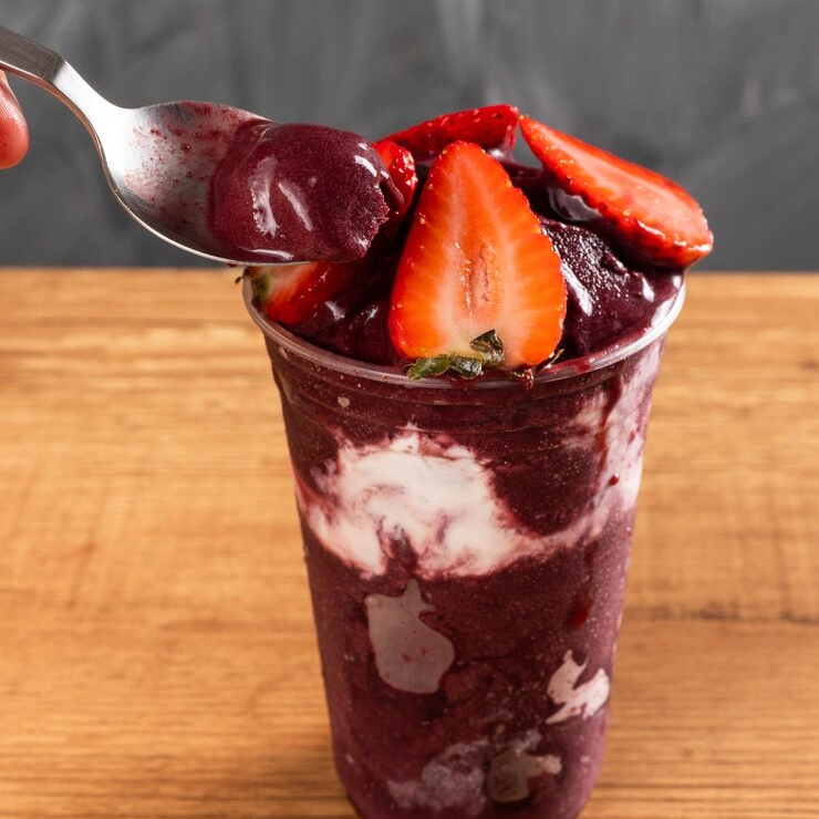Experimente essa novidade, açaí, creme de morango e raspas de chocolate preto! Uma combinação refrescante para os dias de calor.