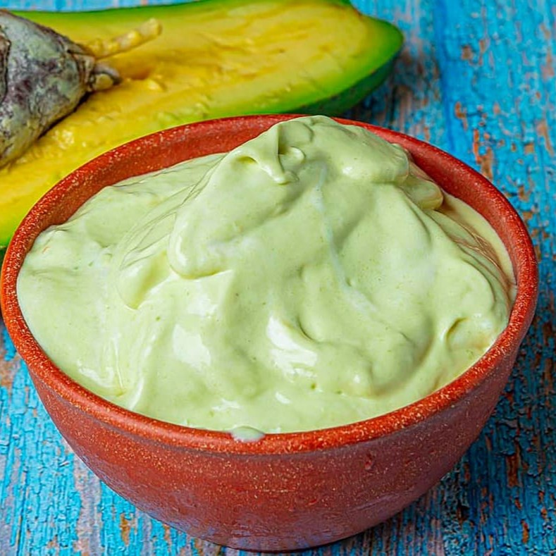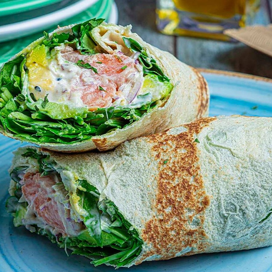 Salmão, abacate, cebola roxa, sour cream e rúcula.