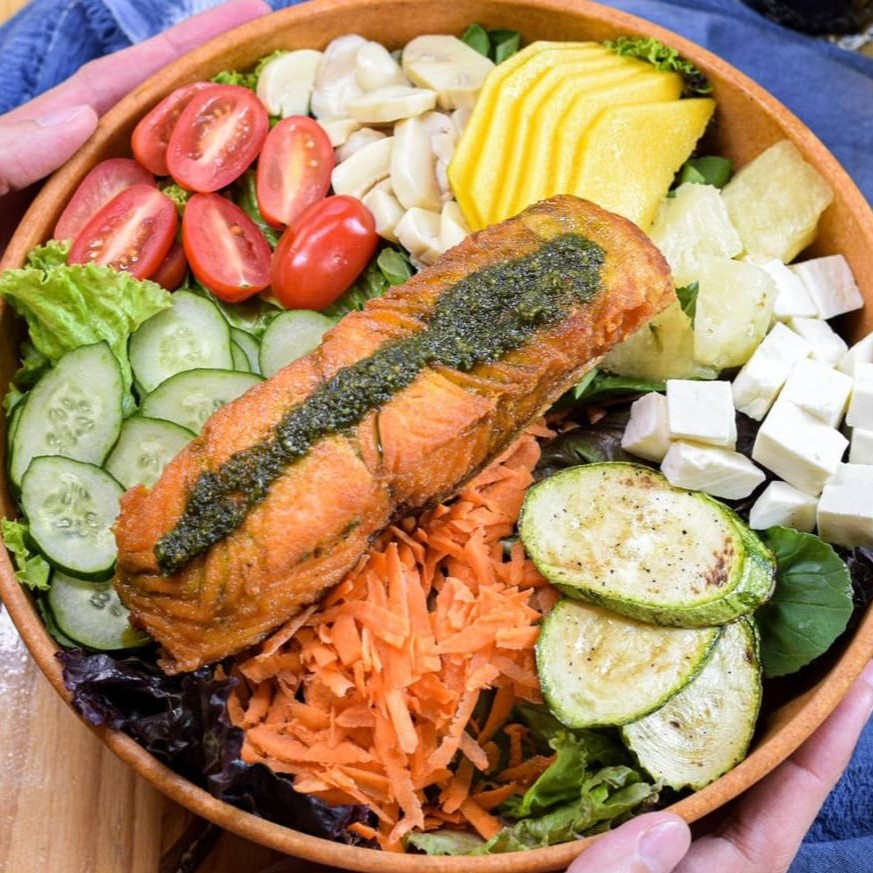 Aqui você escolhe os seus ingredientes favoritos e nós preparamos a sua salada com muito amor!