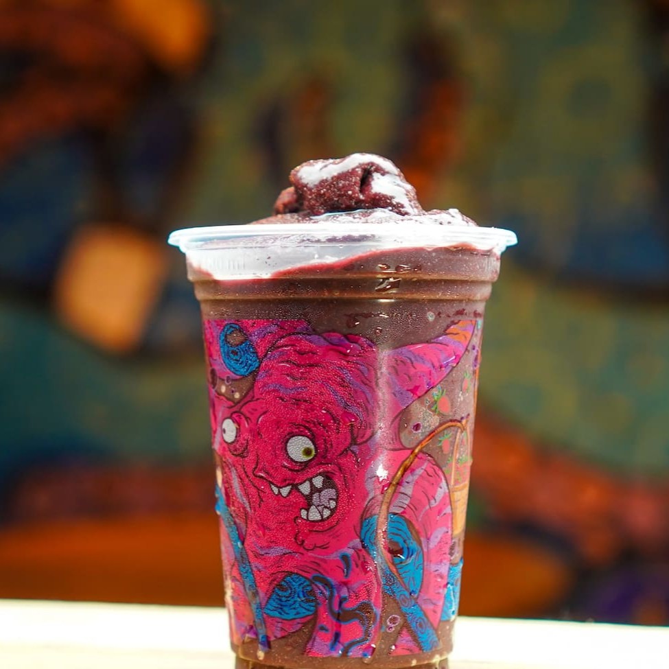 Suco de açaí batido com chocolate ao leite derretido! O nosso maravilhoso Trufado no copo de 500 ml