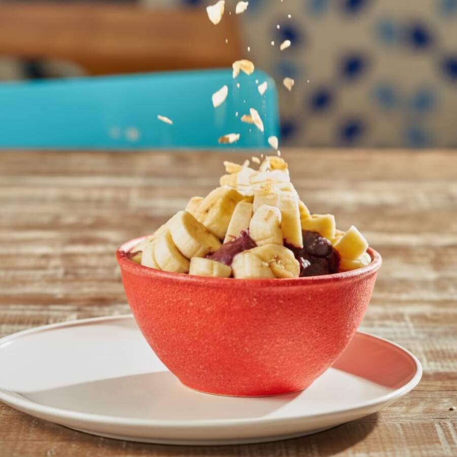 Metade açaí, metade do nosso delicioso creme de fruta + um cereal de sua preferência!