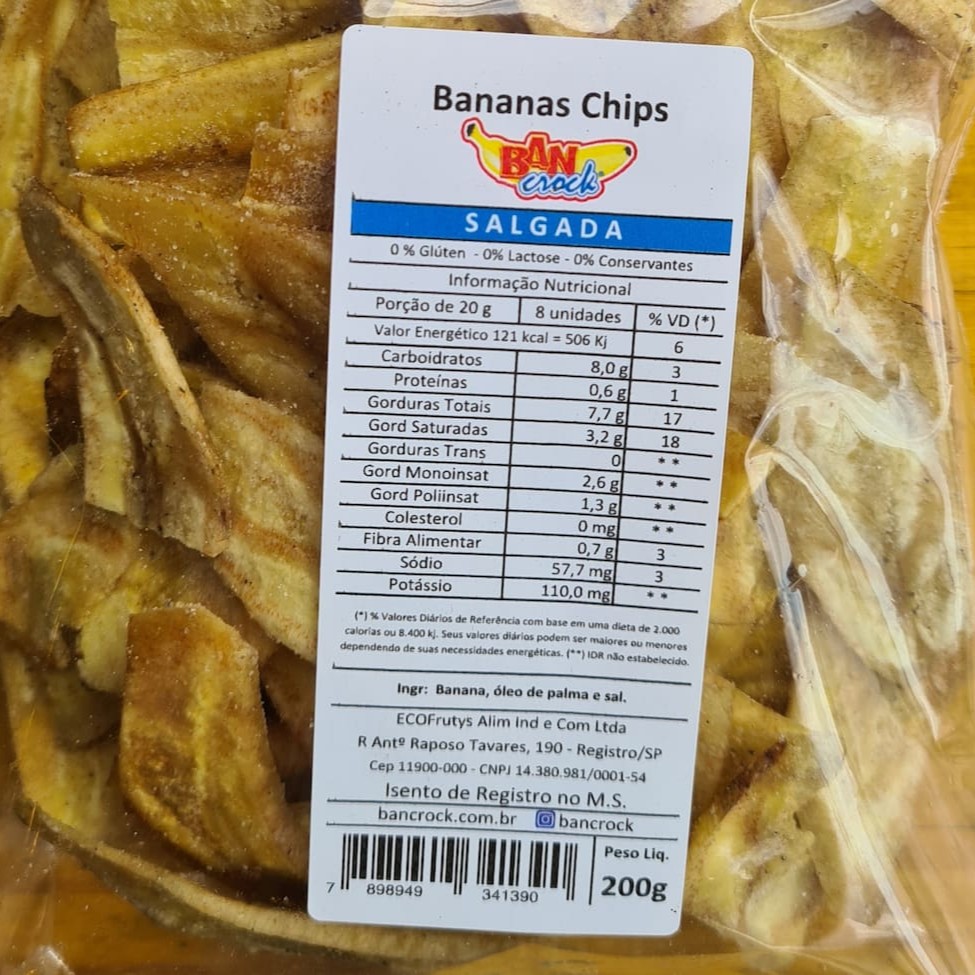 Banana chips adoçada com açúcar e canela Bancrock! 200 gr