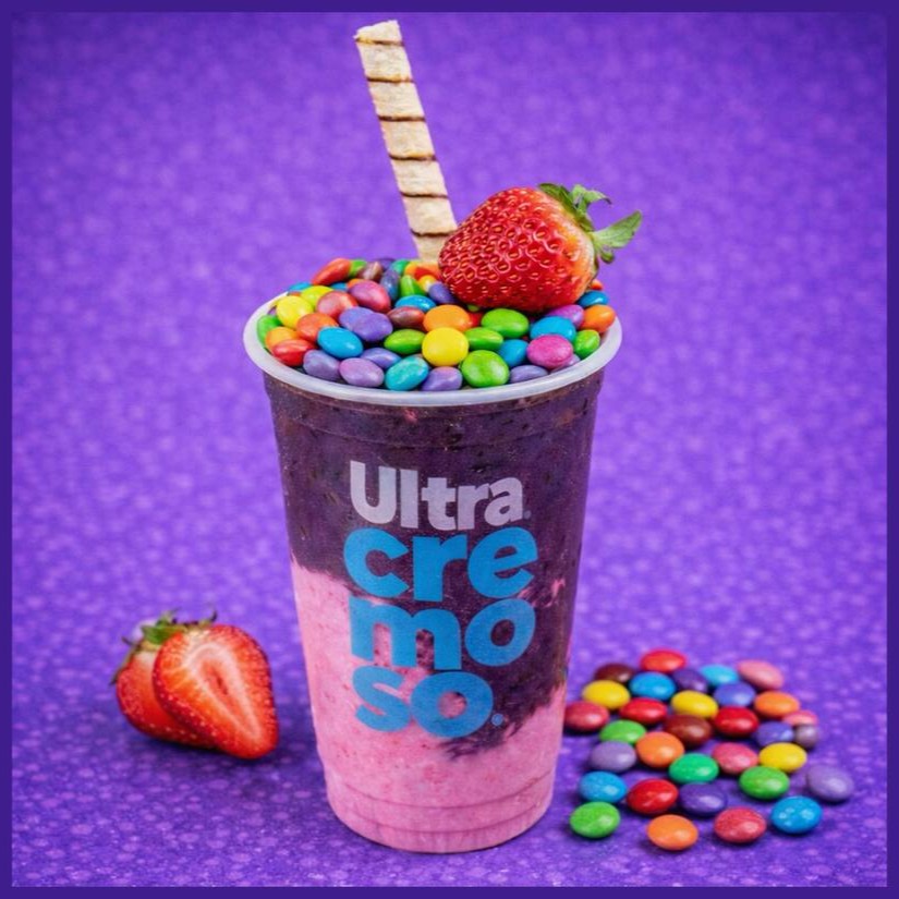 Açaí com complementos de Creme de avelã Cremoso e creme de leitinho