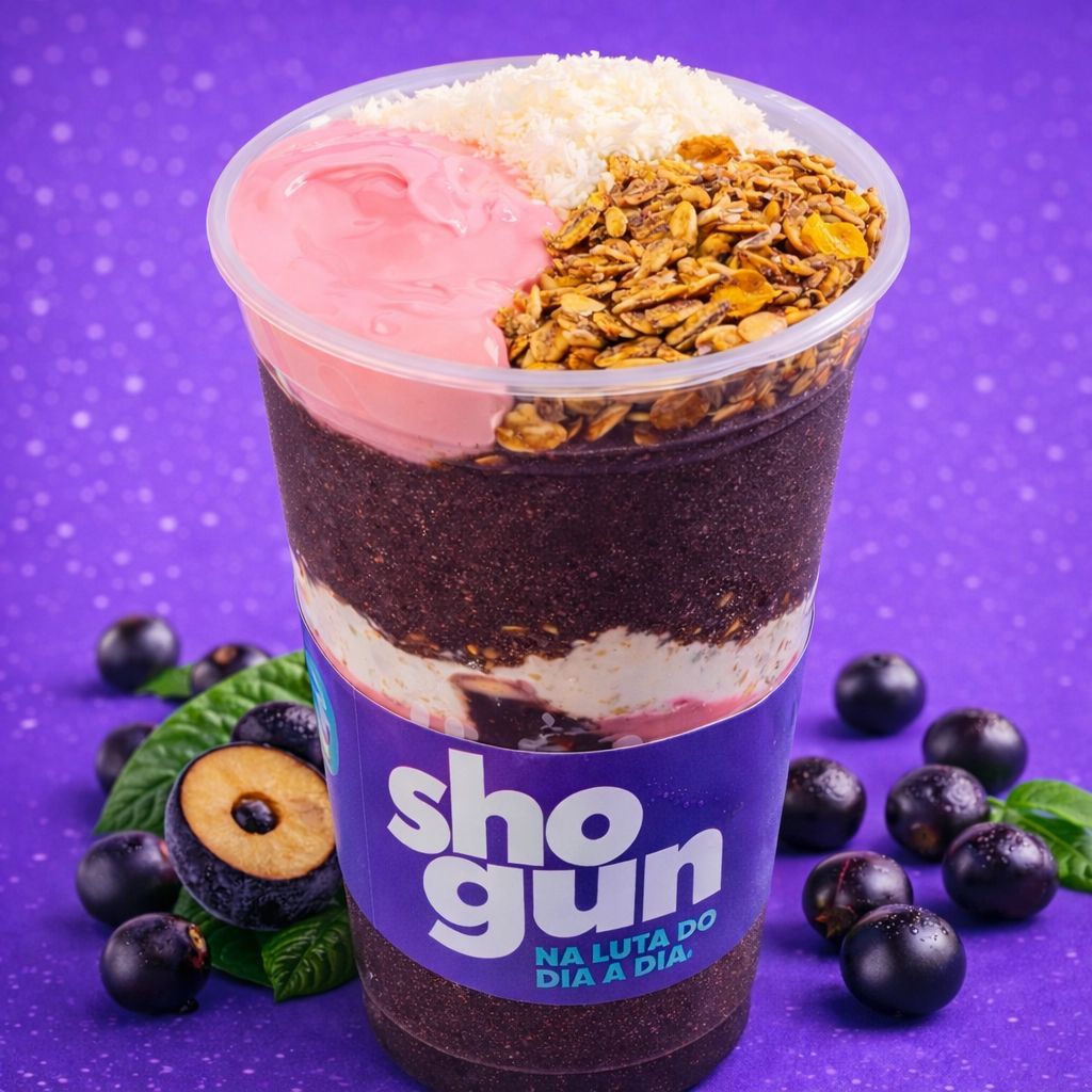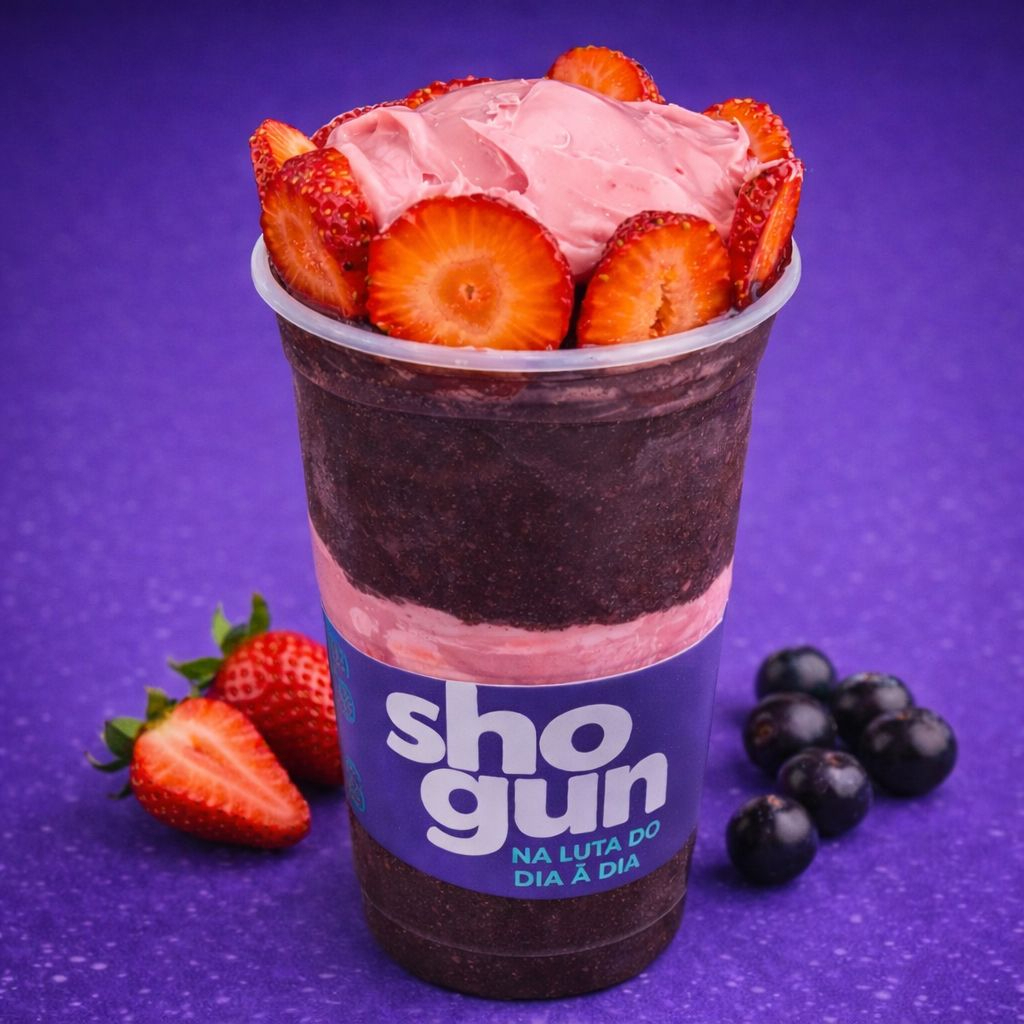 Preparado com nosso irresistível creme de morango, leite Ninho e granola. A força do Shogun em cada colherada!