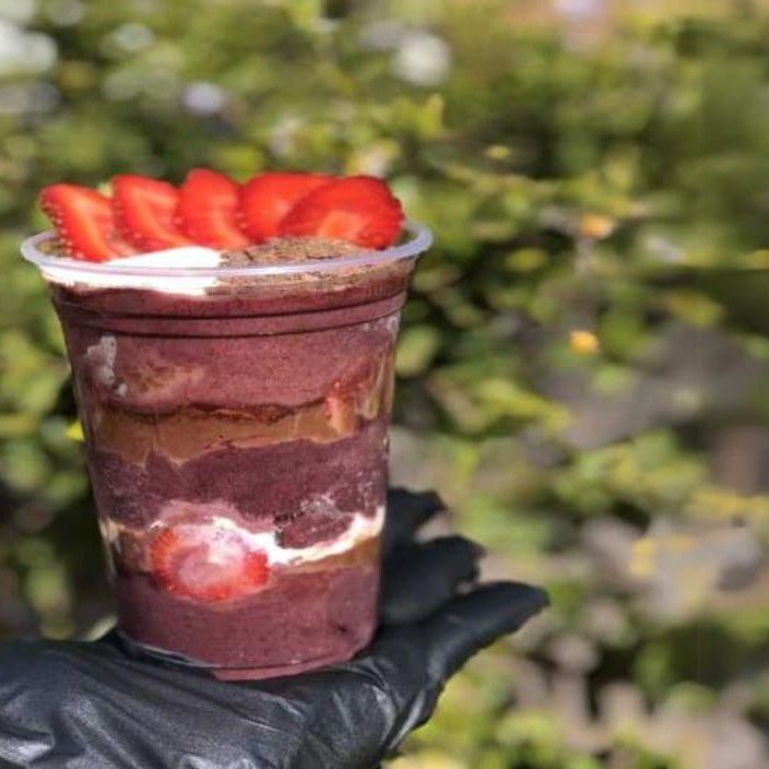 Cremoso Açaí Premium com Delicioso Creme de Brigadeiro, Leite Ninho e Morangos Frescos.