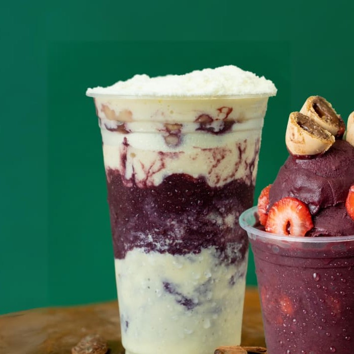 Açaí Premium super cremoso com Leite Condensado, Leite Ninho e Creme de Ninho. São dois copos de 300ml para os fãs dessa combinação irresistível!