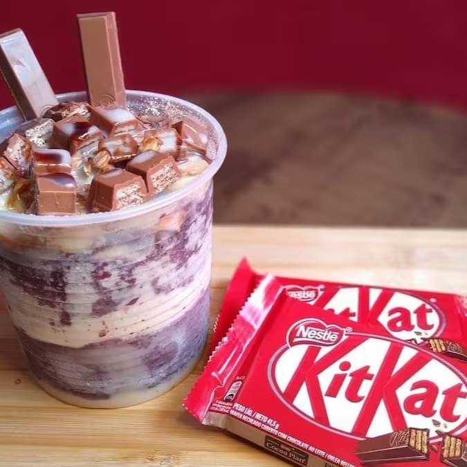 Aquele Açaí Especial Feito com Kitkat Original, Leite Condensado e Leite Ninho.